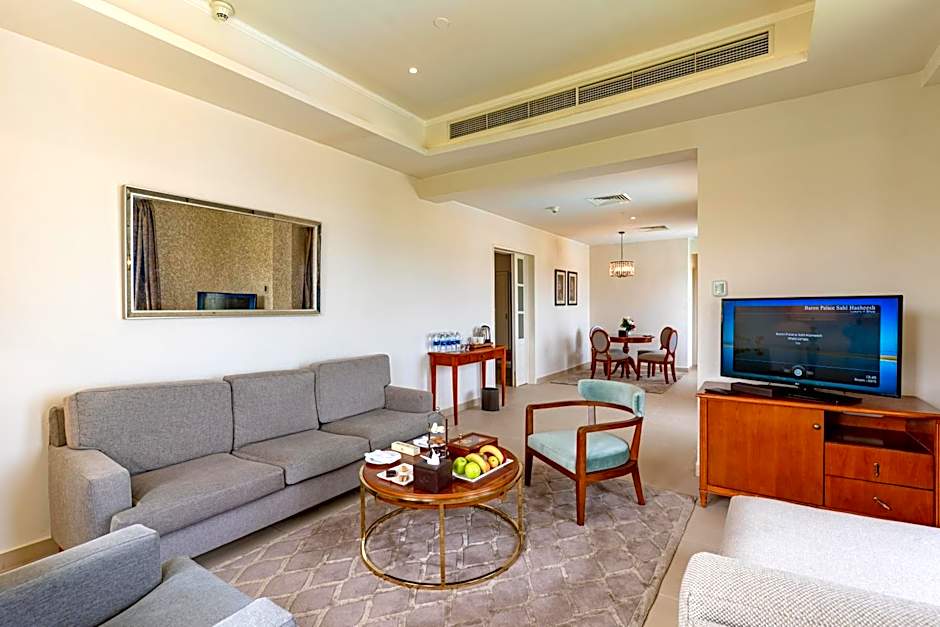 Featuring unrestricted sea-views that offers guests a magnificent panoramic view of Sahl Hashish Bay and its golden sand of the legendary Red Sea beach, this 2-bedroom suite offers a generous living room with dining table and private study area. The focal point of the room is the Baron bed, renowned for its craftsmanship and comfort, always made with the finest crisp-white Egyptian cotton. The Ambassador Sea View Suite is the perfect choice for a family or friend leisure, it’s designed essentially to create the most fabulous experience, for memories that last for lifetime. The bedroom with opulent fabrics and bespoke furniture along with a large deep-soaking bathtub, vanity area with double basin and separate shower, the suite becomes a sensory retreat. This room rate is applicable for Egyptians and local residents only.